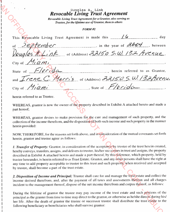 But how could a “revocable” trust agreement that was never recorded convey title? If the document was revocable and was never recorded, the decedent could have changed his mind anytime prior to his death. Wouldn’t these facts doom wife’s claim to title? Nope. So saith the 3d DCA: